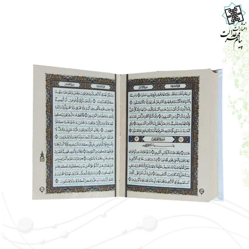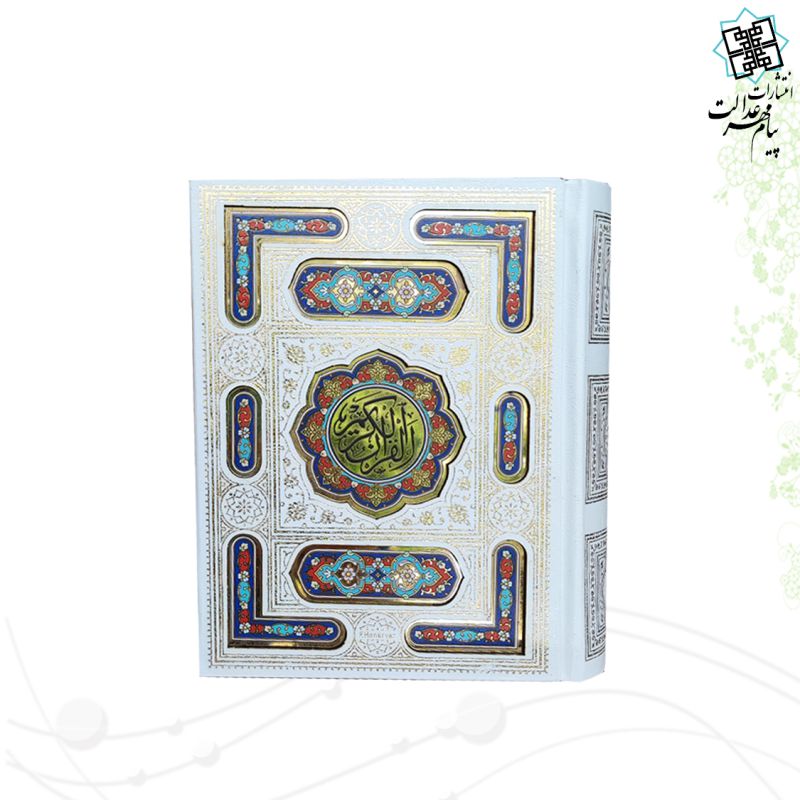 قرآن نیم جیبی معطر عروس سفید همراه با پلاک رنگی جعبه دار