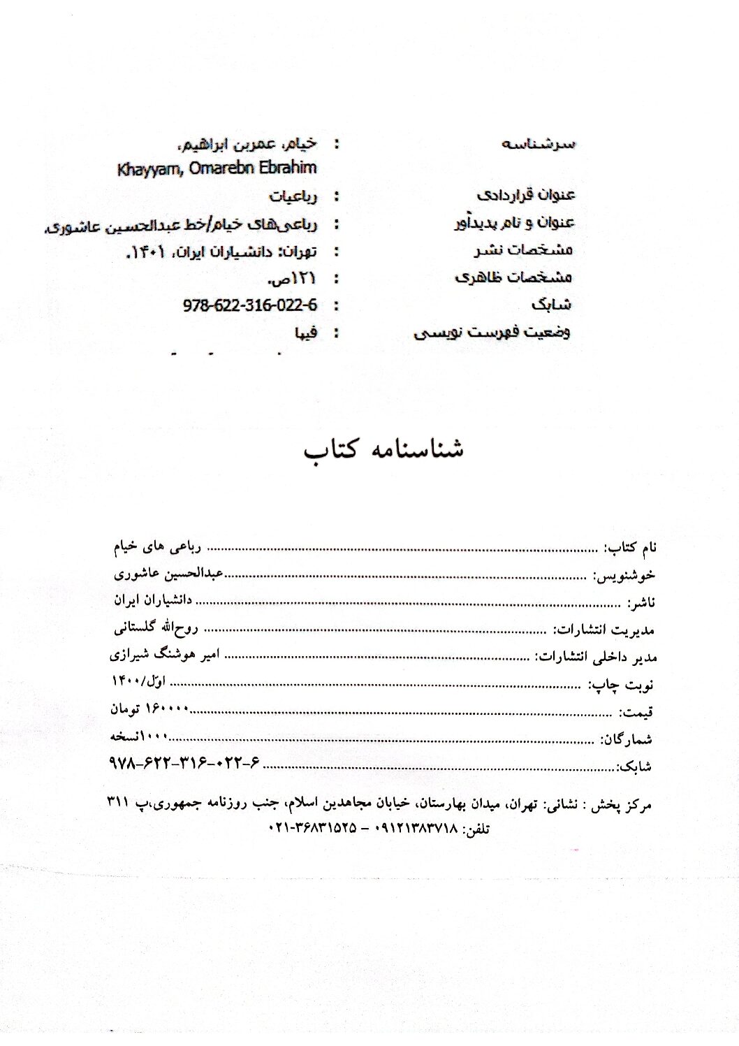 کتاب رباعی های خیام عبدالحسین عاشوری
